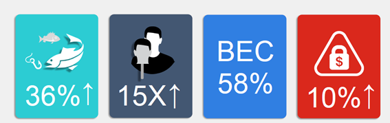 Compromiso de correo electrónico comercial: El compromiso de correo electrónico comercial promedio (BEC) le cuesta a las organizaciones $ 108K. Según Gartner, esos compromisos eluden fácilmente los productos tradicionales de puerta de enlace de correo electrónico seguro (SEG) que se basan en firmas.