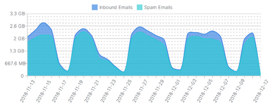 o Ancho de banda de correo electrónico utilizado por día/hora
